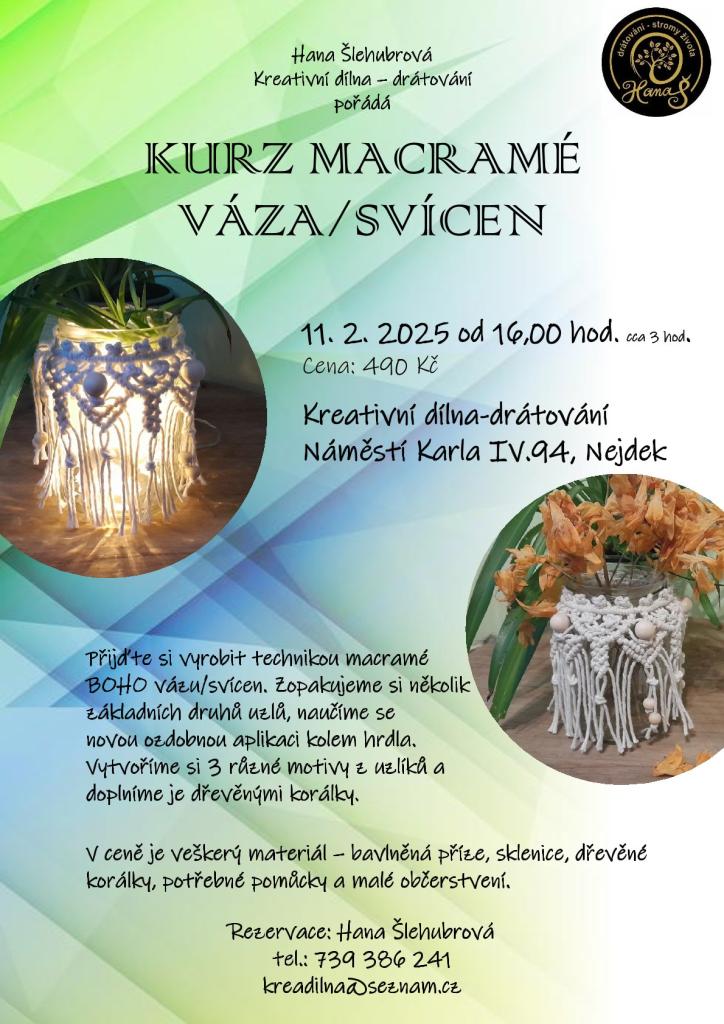 Vyrobte si technikou macremé BOHO vázu/svícen v Kreativní dílně drátkování v Nejdku. Cena 490 Kč.